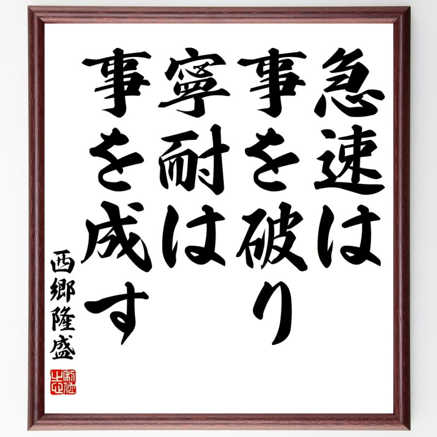 西郷隆盛の名言書道色紙 急速は事を破り 寧耐は事を成す 額付き 受注後直筆 Z0679 直筆書道の名言色紙ショップ千言堂 通販 Yahoo ショッピング